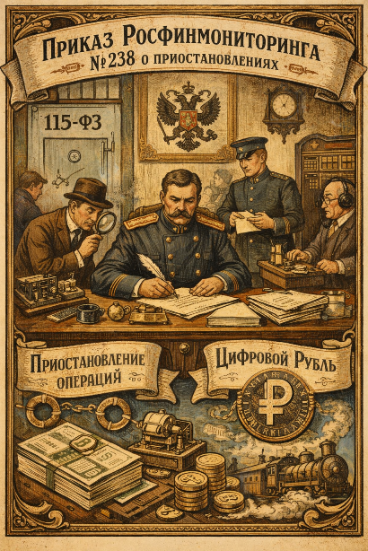 С 13 декабря 2025 года вступил в силу приказ Росфинмониторинга от 7 ноября 2025 г. №238. Документ обновляет порядок оформления и доведения постановлений о приостановлении операций, а также регулирует приостановление действий на платформе цифрового рубля.