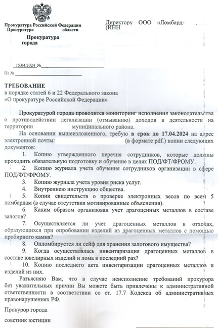Апрель 19, 2024 Что может проверить прокуратура у ломбарда