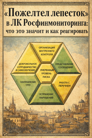 «Пожелтел лепесток» в ЛК Росфинмониторинга: что это значит и как реагировать В начале января 2026 у значительного числа пользователей ЛК возникла ситуация: индикатор риска («ромашка») изменил окраску отдельных лепестков из-за отчёта о результатах осуществления внутреннего контроля